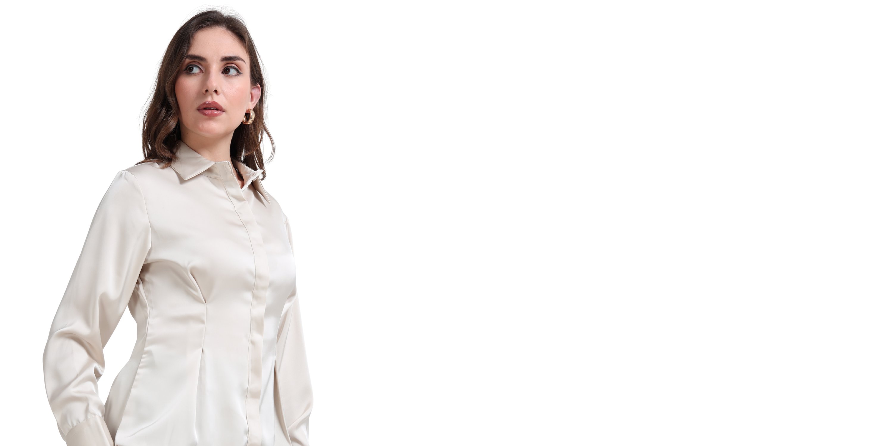 Satin Tailored Shirt - Ecru